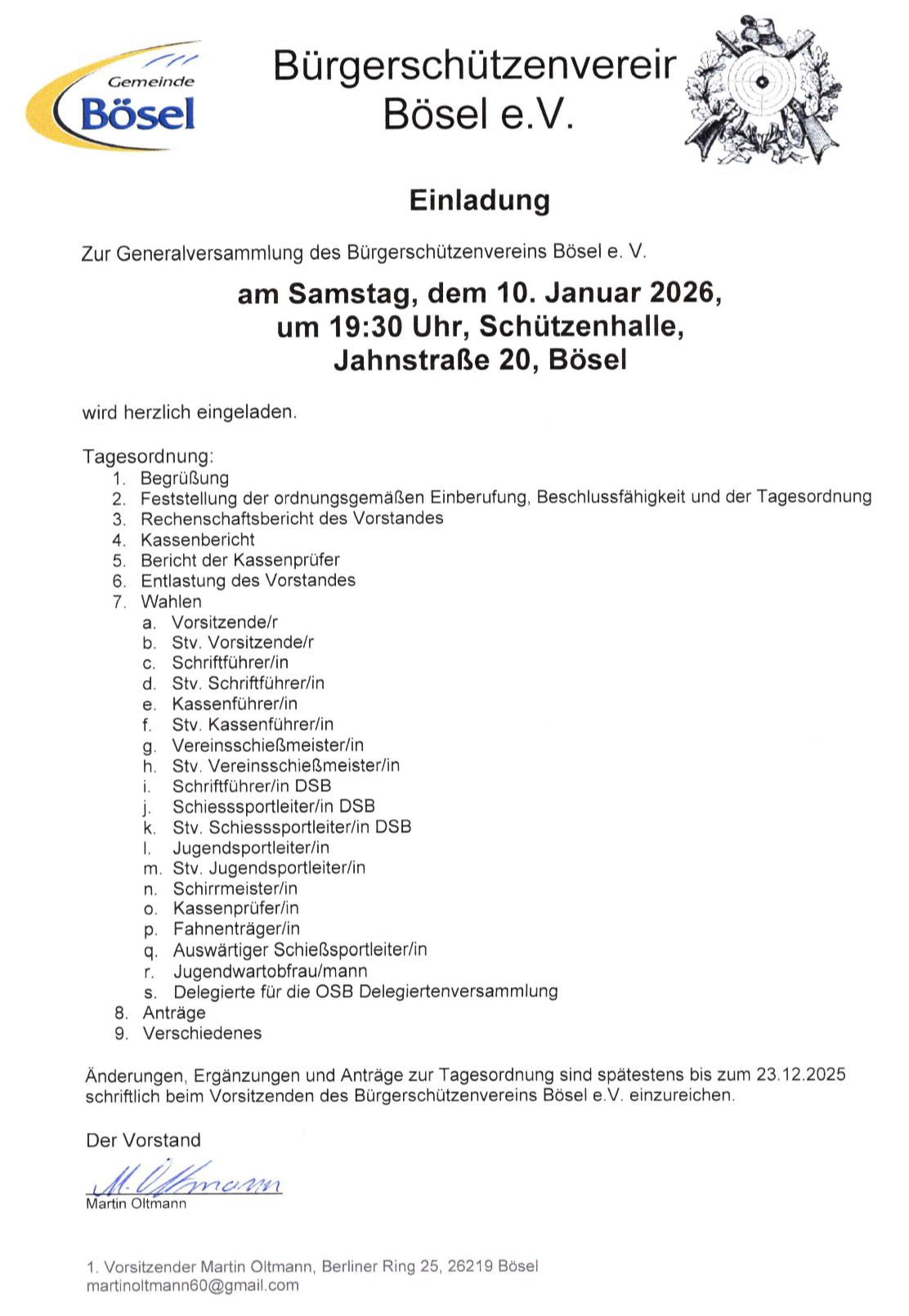 Die Generalversammlung des Bürgerschützenvereins Bösel e. V.